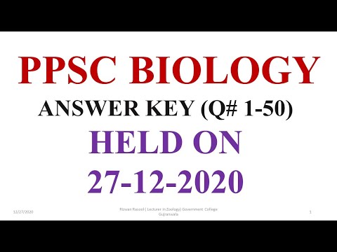 PPSC BIOLOGY 27-12-2020 Answer Key (Questions 1-50) #PPSC BIOLOGY #Answ...